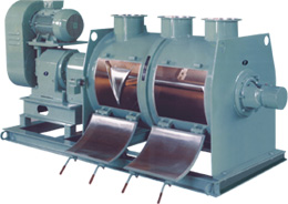 Unique 600 liters Plough Share mixer with 2 sets of multiple chopper blade assemblies and pneumatically operated flush - bottom flap valve used for mixing of friction-lining material. The main drive is powered by 20 H.P. motor...